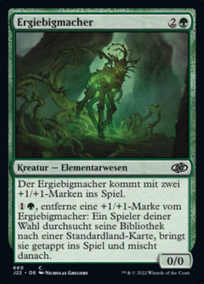 | Rules | Fertilid enters the battlefield with two +1/+1 counters on it. , Remove a +1/+1 counter from Fertilid: Target player searches their library for a basic land card, puts it onto the battlefield tapped, then shuffles. |