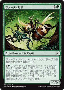 | Rules | Fertilid enters the battlefield with two +1/+1 counters on it. , Remove a +1/+1 counter from Fertilid: Target player searches their library for a basic land card, puts it onto the battlefield tapped, then shuffles. |
