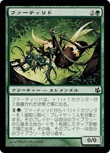 | Rules | Fertilid enters the battlefield with two +1/+1 counters on it. , Remove a +1/+1 counter from Fertilid: Target player searches their library for a basic land card, puts it onto the battlefield tapped, then shuffles. |