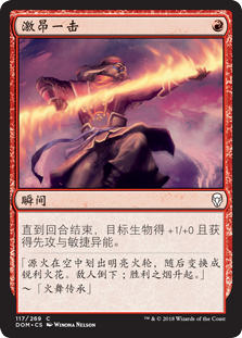 | Rules | Target creature gets +1/+0 and gains first strike and haste until end of turn. |