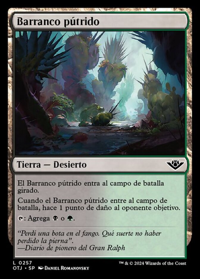 | Rules | Festering Gulch enters the battlefield tapped. When Festering Gulch enters the battlefield, it deals 1 damage to target opponent. : Add or . |