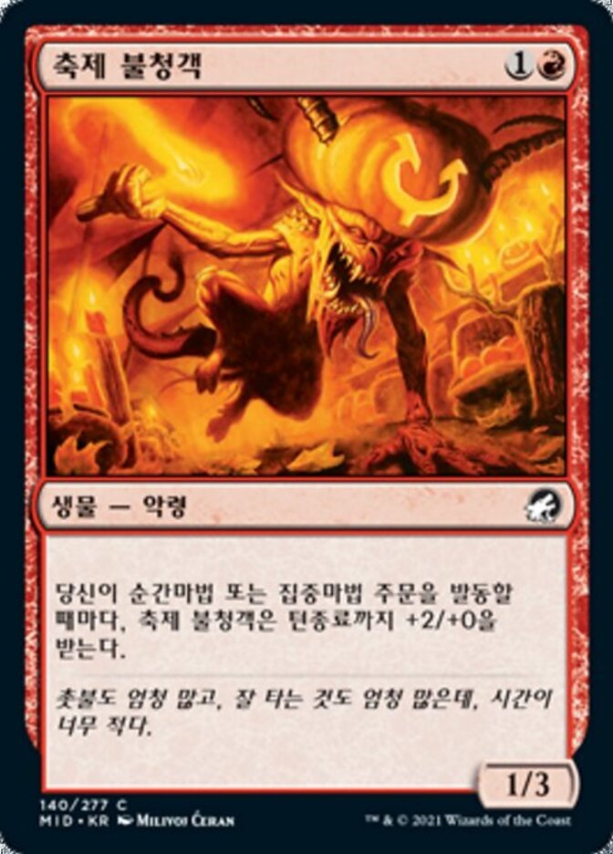| Rules | Whenever you cast an instant or sorcery spell, Festival Crasher gets +2/+0 until end of turn. |