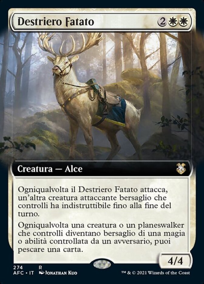 | Rules | Whenever Fey Steed attacks, another target attacking creature you control gains indestructible until end of turn. Whenever a creature or planeswalker you control becomes the target of a spell or ability an opponent controls, you may draw a card. |