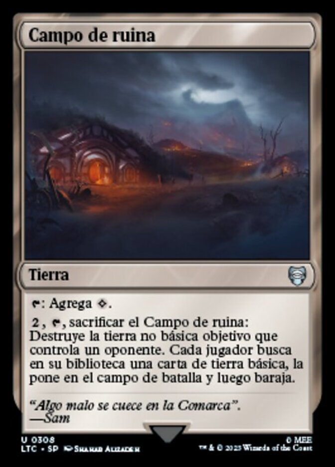 | Rules | : Add . , , Sacrifice Field of Ruin: Destroy target nonbasic land an opponent controls. Each player searches their library for a basic land card, puts it onto the battlefield, then shuffles. |