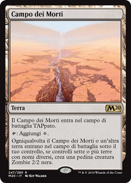 | Rules | Field of the Dead enters the battlefield tapped. : Add . Whenever Field of the Dead or another land enters the battlefield under your control, if you control seven or more lands with different names, create a 2/2 black Zombie creature token. |