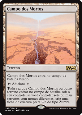 | Rules | Field of the Dead enters the battlefield tapped. : Add . Whenever Field of the Dead or another land enters the battlefield under your control, if you control seven or more lands with different names, create a 2/2 black Zombie creature token. |