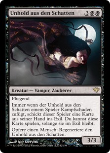 | Rules | Flying Whenever Fiend of the Shadows deals combat damage to a player, that player exiles a card from their hand. You may play that card for as long as it remains exiled. Sacrifice a Human: Regenerate Fiend of the Shadows. |