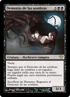 | Rules | Flying Whenever Fiend of the Shadows deals combat damage to a player, that player exiles a card from their hand. You may play that card for as long as it remains exiled. Sacrifice a Human: Regenerate Fiend of the Shadows. |