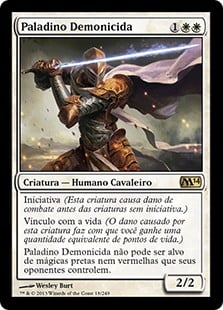 | Rules | First strike (This creature deals combat damage before creatures without first strike.) Lifelink (Damage dealt by this creature also causes you to gain that much life.) Fiendslayer Paladin can't be the target of black or red spells your opponents control. |