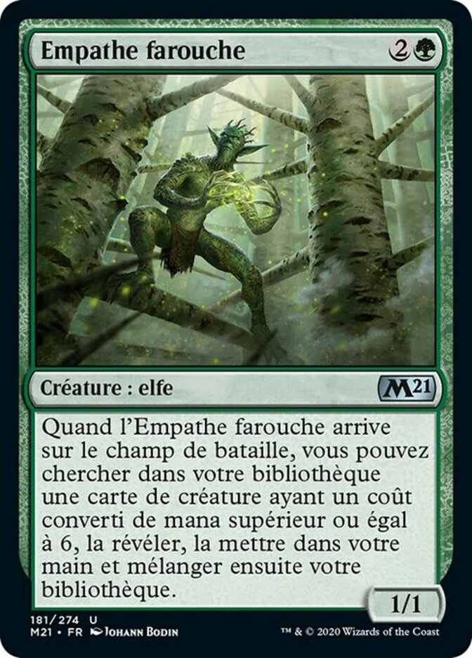 | Rules | When Fierce Empath enters the battlefield, you may search your library for a creature card with mana value 6 or greater, reveal it, put it into your hand, then shuffle. |