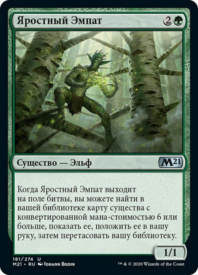 | Rules | When Fierce Empath enters the battlefield, you may search your library for a creature card with mana value 6 or greater, reveal it, put it into your hand, then shuffle. |