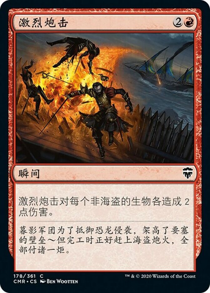 | Rules | Fiery Cannonade deals 2 damage to each non-Pirate creature. |