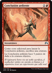| Rules | As an additional cost to cast this spell, sacrifice a creature. Fiery Conclusion deals 5 damage to target creature. |