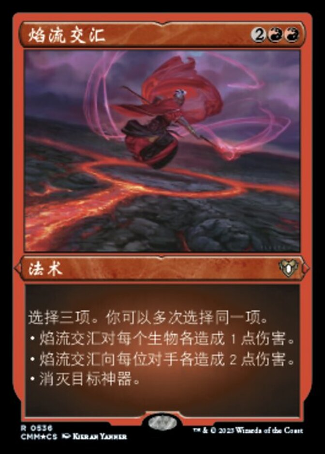 | Rules | Choose three. You may choose the same mode more than once. • Fiery Confluence deals 1 damage to each creature. • Fiery Confluence deals 2 damage to each opponent. • Destroy target artifact. |