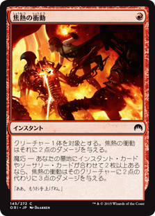 | Rules | Fiery Impulse deals 2 damage to target creature. Spell mastery — If there are two or more instant and/or sorcery cards in your graveyard, Fiery Impulse deals 3 damage instead. |
