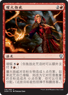 | Rules | Kicker (You may pay an additional as you cast this spell.) Fight with Fire deals 5 damage to target creature. If this spell was kicked, it deals 10 damage divided as you choose among any number of targets instead. (Those targets can include players and planeswalkers.) |