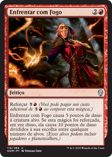 Fight with Fire deals 5 damage to target creature. If this spell was kicked, it deals 10 damage divided as you choose among any number of targets instead. (Those targets can include players and planeswalkers.)
