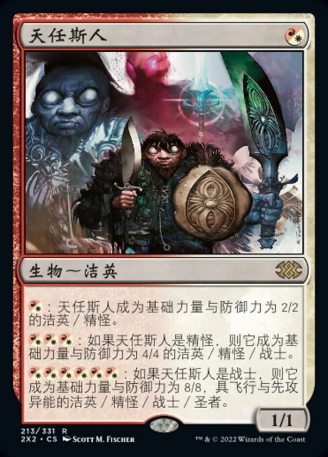 | Rules | : Figure of Destiny becomes a Kithkin Spirit with base power and toughness 2/2. : If Figure of Destiny is a Spirit, it becomes a Kithkin Spirit Warrior with base power and toughness 4/4. : If Figure of Destiny is a Warrior, it becomes a Kithkin Spirit Warrior Avatar with base power and toughness 8/8, flying, and first strike. |