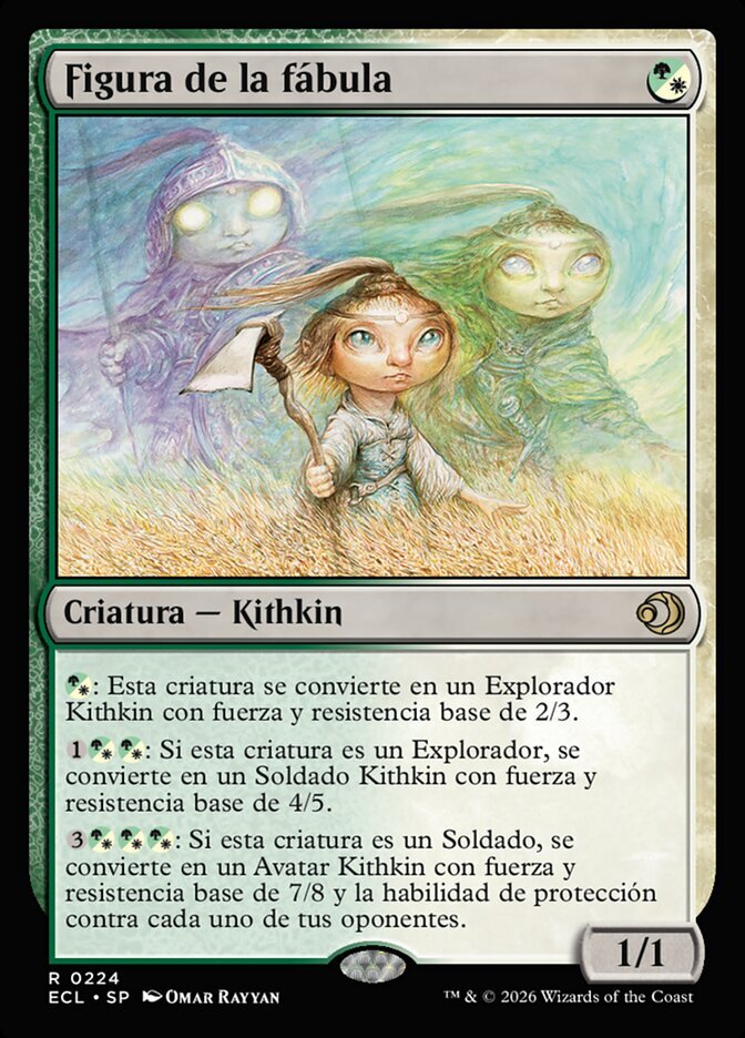 | Rules | : This creature becomes a Kithkin Scout with base power and toughness 2/3. : If this creature is a Scout, it becomes a Kithkin Soldier with base power and toughness 4/5. : If this creature is a Soldier, it becomes a Kithkin Avatar with base power and toughness 7/8 and protection from each of your opponents. |