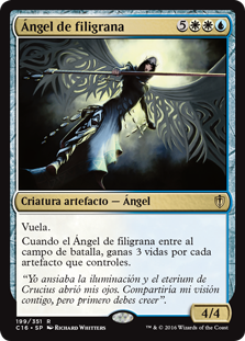 | Rules | Flying When Filigree Angel enters the battlefield, you gain 3 life for each artifact you control. |