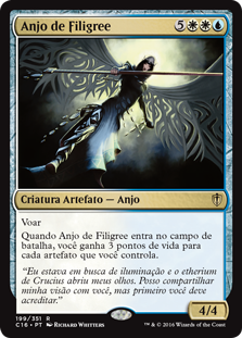 | Rules | Flying When Filigree Angel enters the battlefield, you gain 3 life for each artifact you control. |
