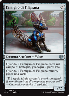 | Rules | When Filigree Familiar enters the battlefield, you gain 2 life. When Filigree Familiar dies, draw a card. |