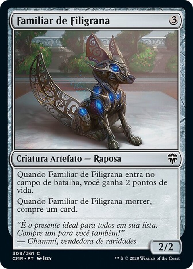 | Rules | When Filigree Familiar enters the battlefield, you gain 2 life. When Filigree Familiar dies, draw a card. |