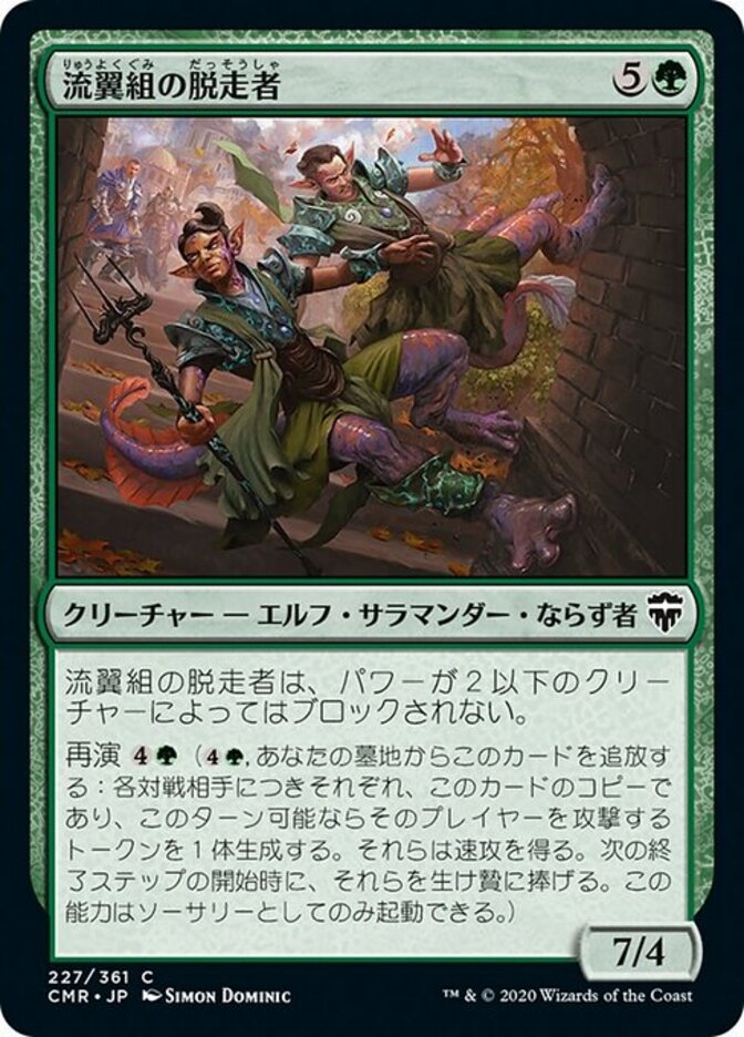 | Rules | Fin-Clade Fugitives can't be blocked by creatures with power 2 or less. Encore (, Exile this card from your graveyard: For each opponent, create a token copy that attacks that opponent this turn if able. They gain haste. Sacrifice them at the beginning of the next end step. Activate only as a sorcery.) |
