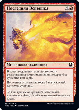 | Rules | As an additional cost to cast this spell, sacrifice a creature or enchantment. Final Flare deals 5 damage to target creature. |