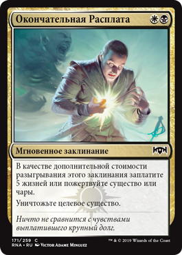 | Rules | As an additional cost to cast this spell, pay 5 life or sacrifice a creature or enchantment. Destroy target creature. |