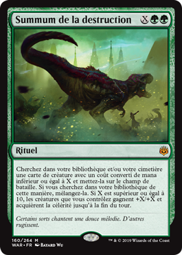 | Rules | Search your library and/or graveyard for a creature card with mana value X or less and put it onto the battlefield. If you search your library this way, shuffle. If X is 10 or more, creatures you control get +X/+X and gain haste until end of turn. |