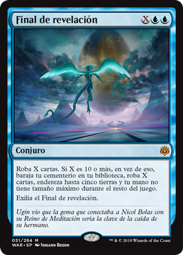 | Rules | Draw X cards. If X is 10 or more, instead shuffle your graveyard into your library, draw X cards, untap up to five lands, and you have no maximum hand size for the rest of the game. Exile Finale of Revelation. |