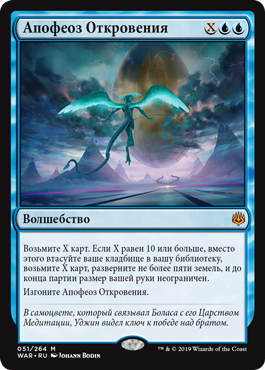 | Rules | Draw X cards. If X is 10 or more, instead shuffle your graveyard into your library, draw X cards, untap up to five lands, and you have no maximum hand size for the rest of the game. Exile Finale of Revelation. |