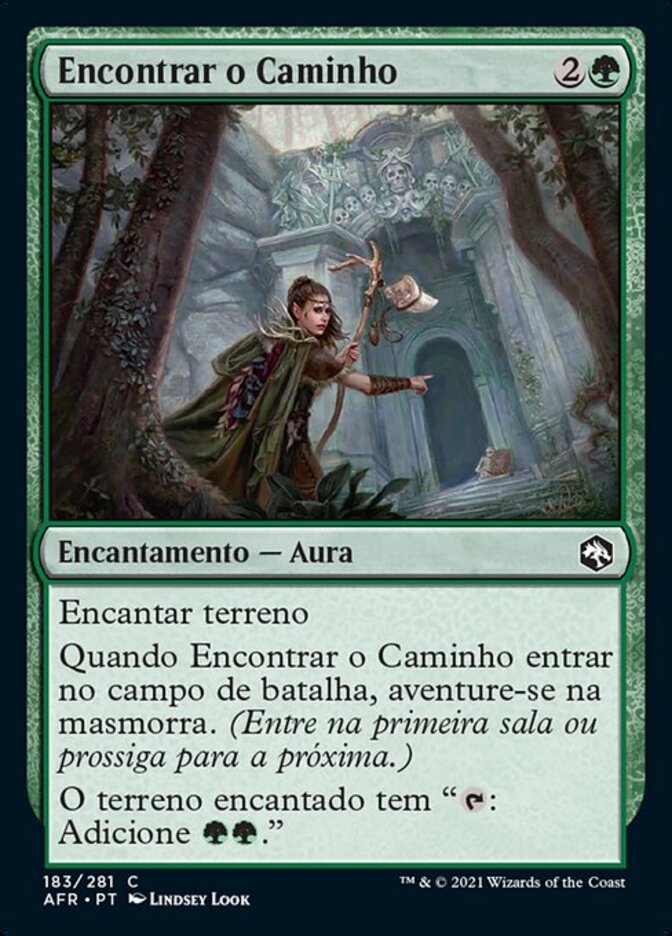 | Rules | Enchant land When Find the Path enters the battlefield, venture into the dungeon. (Enter the first room or advance to the next room.) Enchanted land has ": Add ." |
