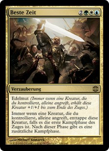 | Rules | Exalted (Whenever a creature you control attacks alone, that creature gets +1/+1 until end of turn.) Whenever a creature you control attacks alone, if it's the first combat phase of the turn, untap that creature. After this phase, there is an additional combat phase. |