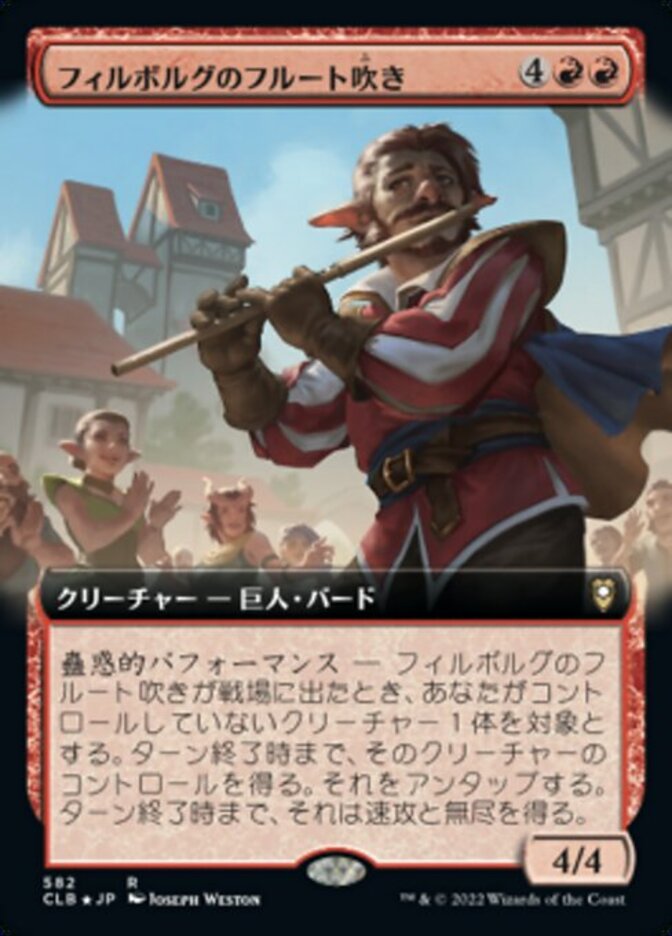 | Rules | Captivating Performance — When Firbolg Flutist enters the battlefield, gain control of target creature you don't control until end of turn. Untap that creature. It gains haste and myriad until end of turn. (Whenever that creature attacks, for each opponent other than defending player, you may create a token that's a copy of that creature that's tapped and attacking that player or a planeswalker they control. Exile the tokens at end of combat.) |