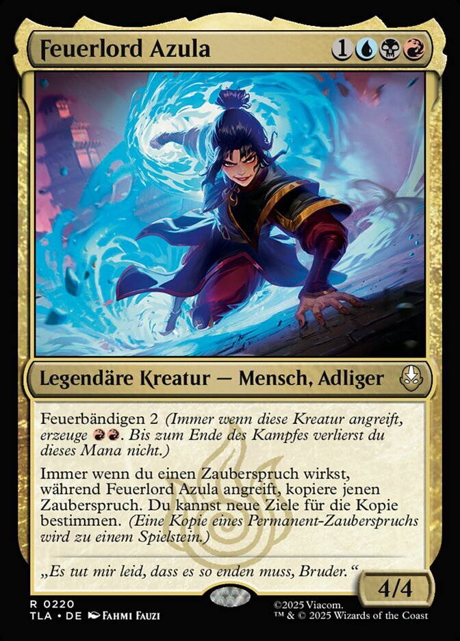Whenever you cast a spell while Fire Lord Azula is attacking, copy that spell. You may choose new targets for the copy. (A copy of a permanent spell becomes a token.)