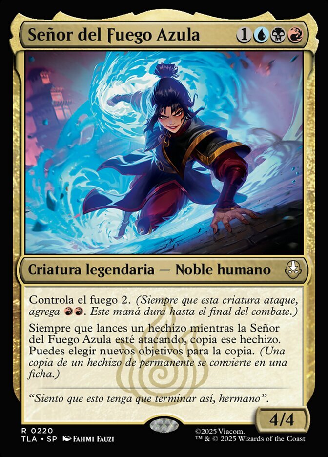 | Rules | Firebending 2 (Whenever this creature attacks, add . This mana lasts until end of combat.) Whenever you cast a spell while Fire Lord Azula is attacking, copy that spell. You may choose new targets for the copy. (A copy of a permanent spell becomes a token.) |