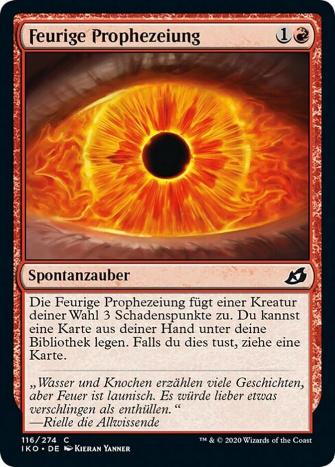 | Rules | Fire Prophecy deals 3 damage to target creature. You may put a card from your hand on the bottom of your library. If you do, draw a card. |