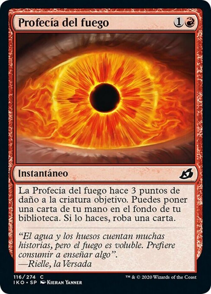 | Rules | Fire Prophecy deals 3 damage to target creature. You may put a card from your hand on the bottom of your library. If you do, draw a card. |