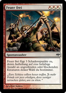| Rules | Fire at Will deals 3 damage divided as you choose among one, two, or three target attacking or blocking creatures. |