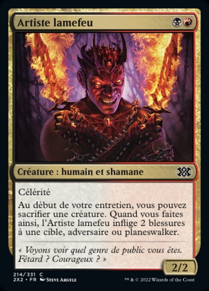 | Rules | Haste At the beginning of your upkeep, you may sacrifice a creature. When you do, Fireblade Artist deals 2 damage to target opponent or planeswalker. |