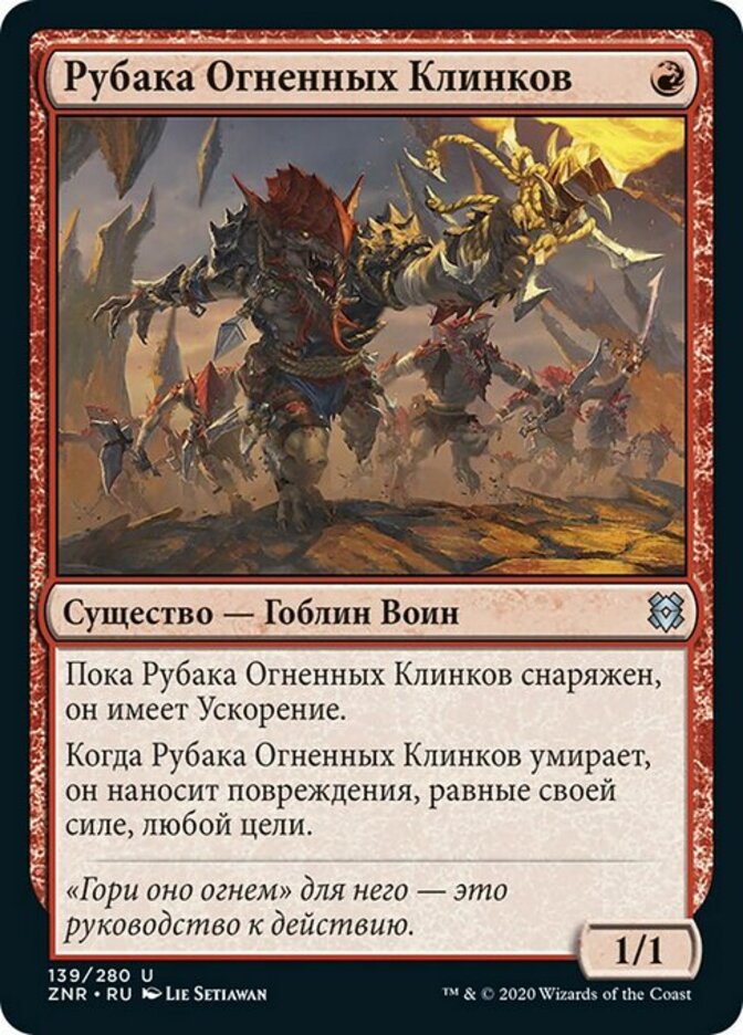 | Rules | As long as Fireblade Charger is equipped, it has haste. When Fireblade Charger dies, it deals damage equal to its power to any target. |