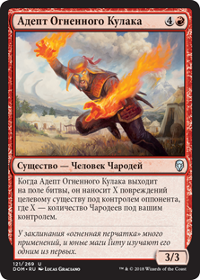 | Rules | When Firefist Adept enters the battlefield, it deals X damage to target creature an opponent controls, where X is the number of Wizards you control. |