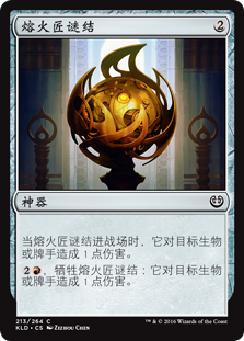 | Rules | When Fireforger's Puzzleknot enters the battlefield, it deals 1 damage to any target. , Sacrifice Fireforger's Puzzleknot: It deals 1 damage to any target. |