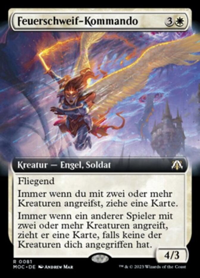 | Rules | Flying Whenever you attack with two or more creatures, draw a card. Whenever another player attacks with two or more creatures, they draw a card if none of those creatures attacked you. |
