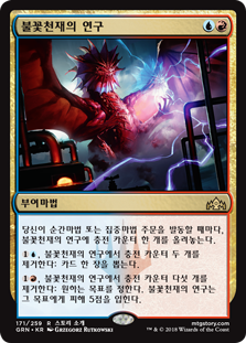| Rules | Whenever you cast an instant or sorcery spell, put a charge counter on Firemind's Research. , Remove two charge counters from Firemind's Research: Draw a card. , Remove five charge counters from Firemind's Research: It deals 5 damage to any target. |