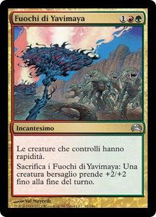 | Rules | Creatures you control have haste. Sacrifice Fires of Yavimaya: Target creature gets +2/+2 until end of turn. |