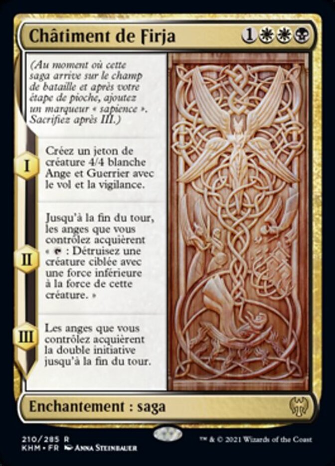 | Rules | (As this Saga enters and after your draw step, add a lore counter. Sacrifice after III.) I — Create a 4/4 white Angel Warrior creature token with flying and vigilance. II — Until end of turn, Angels you control gain ": Destroy target creature with power less than this creature's power." III — Angels you control gain double strike until end of turn. |