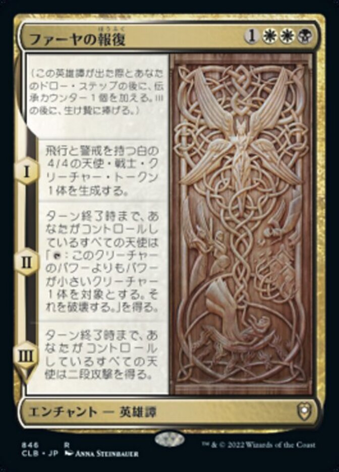 | Rules | (As this Saga enters and after your draw step, add a lore counter. Sacrifice after III.) I — Create a 4/4 white Angel Warrior creature token with flying and vigilance. II — Until end of turn, Angels you control gain ": Destroy target creature with power less than this creature's power." III — Angels you control gain double strike until end of turn. |